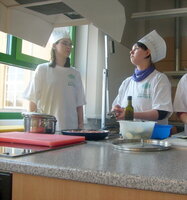 Das Förderschulzentrum Görlitz lud uns und 4 weitere Förderschulen (G) ein, um die besten Köche zu ermitteln. Unser Kochteam von 6 Oberstufenschülern bereitete Hackflleisch-Zuchini-Pfanne mit Reis und als Nachtisch Pudding mit Obstsalat zu. Natürlich gehörte dazu, ein von uns schön dekorierter Tisch. Die Schüler arbeiteten Hand in Hand und erreichten ein gutes Ergebniss. Leider blieb der Sieg bei dem Kochteam aus Görlitz, aber wir lassen uns nicht entmutigen und sind im nächsten Jahr wieder mit dabei.