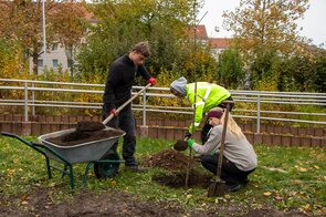 Die Lindenschule Bautzen erhielt für die Gestaltung ihres Natur- und Erlebnisraumes Bäume und Sträucher von den "Stadtbegrünern Bautzen" im Rahmen der Aktion "1000 Bäume für Bautzen". Am 3. November 2023 war es dann soweit. Herr Dr. Berger von den "Stadtbegrünern" und 10 fleißige Helfer vom Staatsbetreib Sächsisches Immobilien- und Baumanagement (SIB) pflanzten gemeisam mit den Schülern und dem pädagogischen Personal alte Apfelsorten, Felsenbirne, Maulbeere, Holunder und Kornelkirsche. Die Vorsitzende vom Förderverein unserer Schule Frau Hasche und Projektleiter Herr Idzinski bedanken sich bei allen fleißigen Helfern und den neuen Sponsoren Lausitz Food, Holzwerk Bautzen und Staudenmix.de.